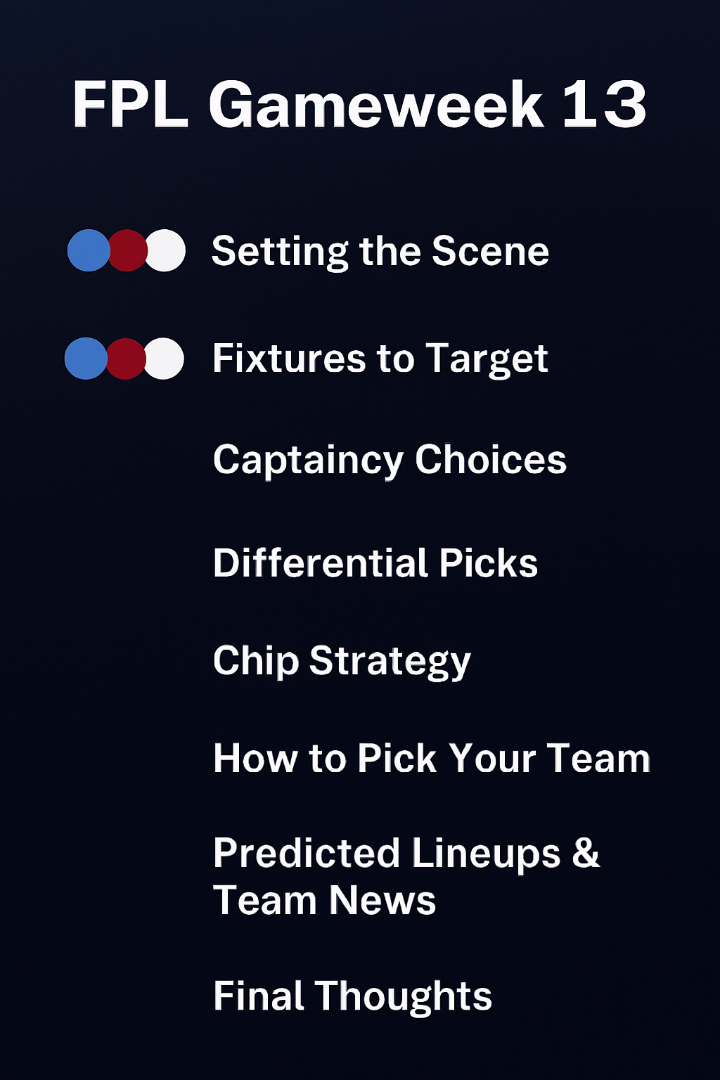 1. Setting the Scene Gameweek 13 arrives at a pivotal point in the season. With the deadline at 13:30 GMT…