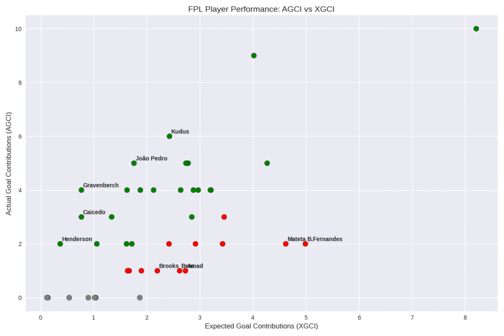 Forget vibes — we’re going full forensic. By comparing actual goal contributions (AGCI) to expected stats (XGCI), we expose the truth behind the points. Whether you’re chasing differentials or dodging regression, this breakdown of forwards and midfielders will sharpen your squad decisions.